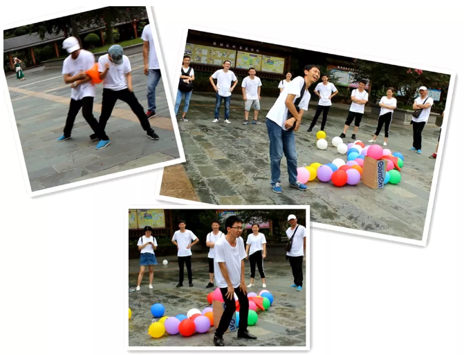 “擠壓氣球”游戲,一展團(tuán)隊(duì)風(fēng)采,大家齊心協(xié)力壓氣球,“啪啪啪”聲響如雷,笑成一片。