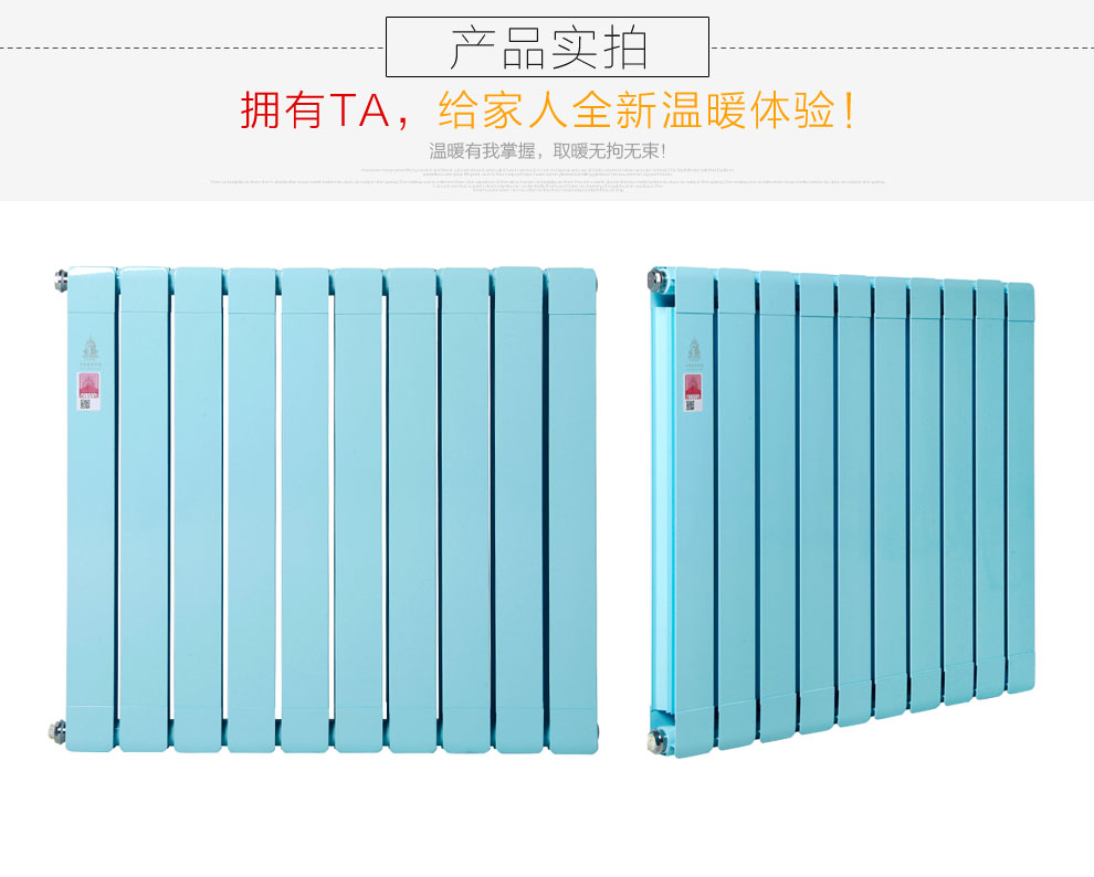 2、散熱性好:鋁的散熱性非常好,銅鋁復(fù)合暖氣片外層以鋁包裹,散熱性非常好。