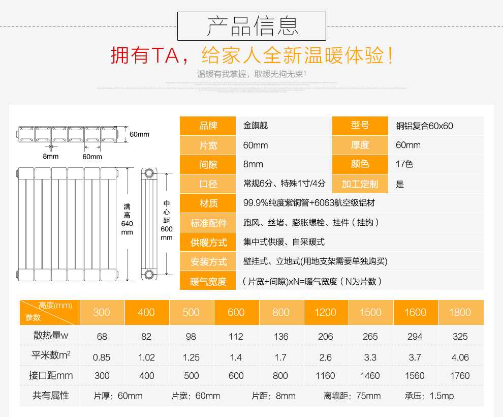 金旗艦銅鋁復合暖氣片質(zhì)保,產(chǎn)品只換不修。