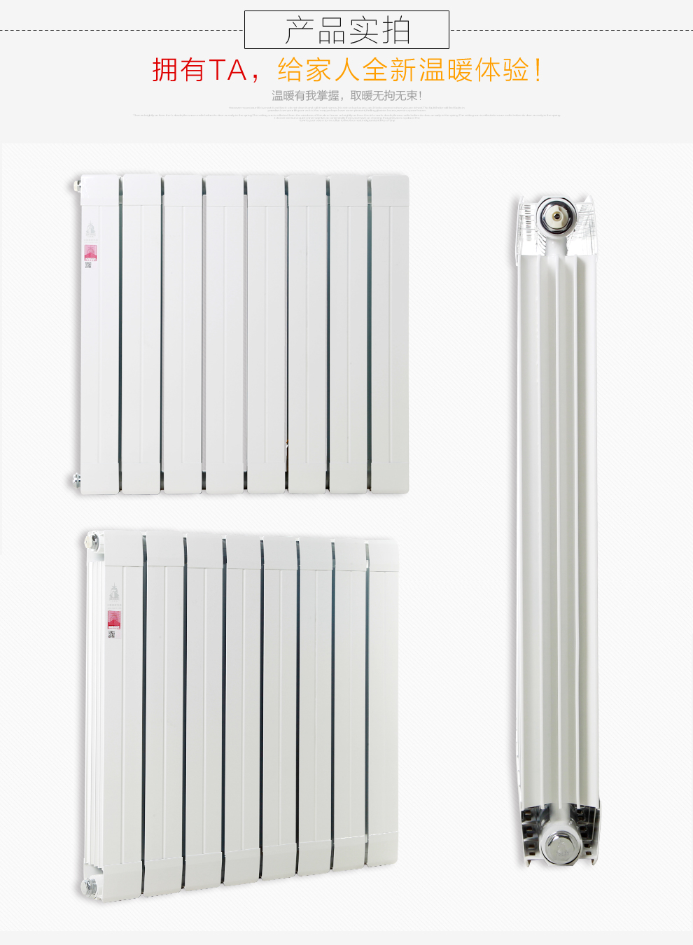 2、散熱性好:鋁的散熱性非常好,銅鋁復(fù)合暖氣片外層以鋁包裹,散熱性非常好。